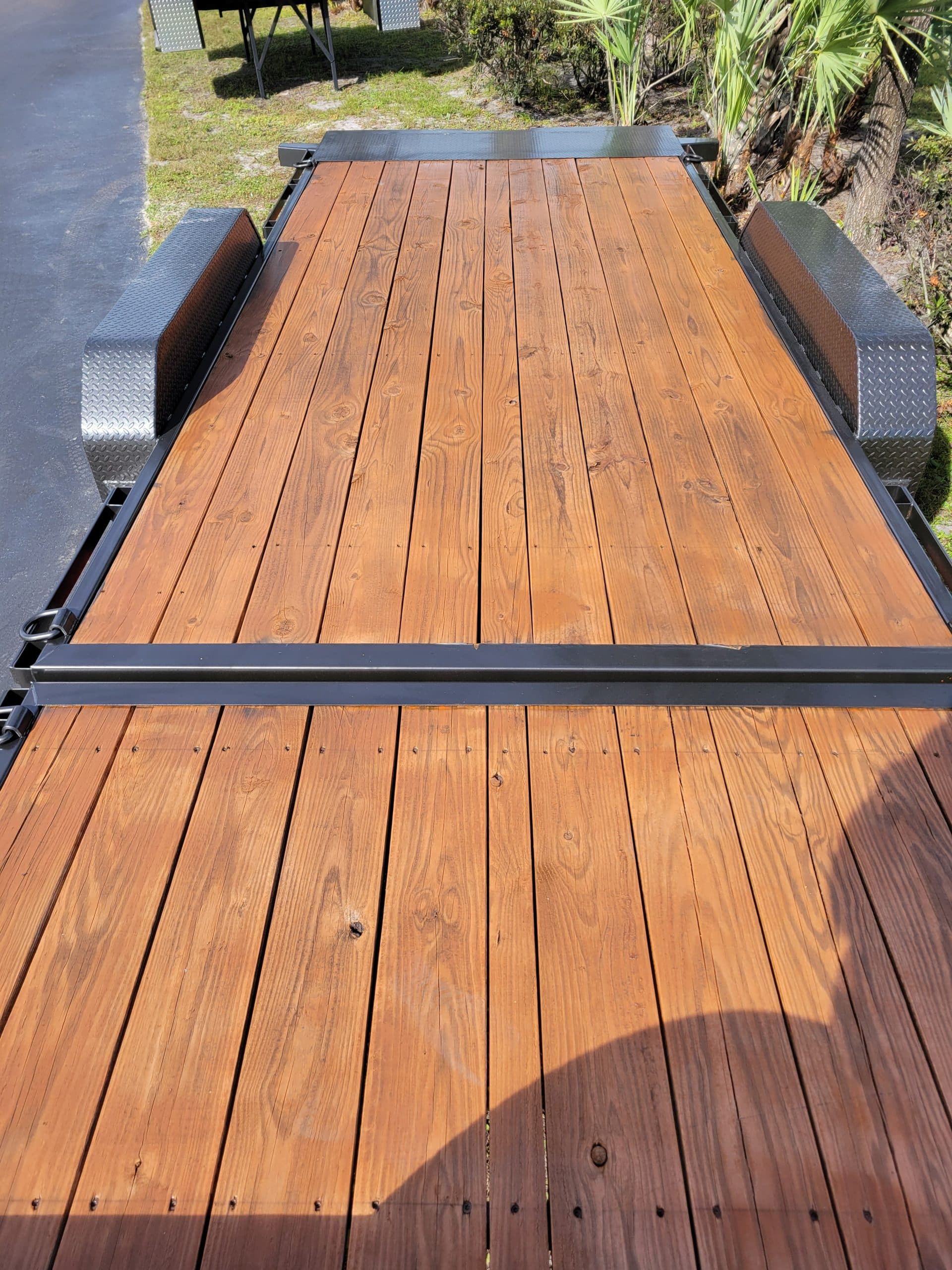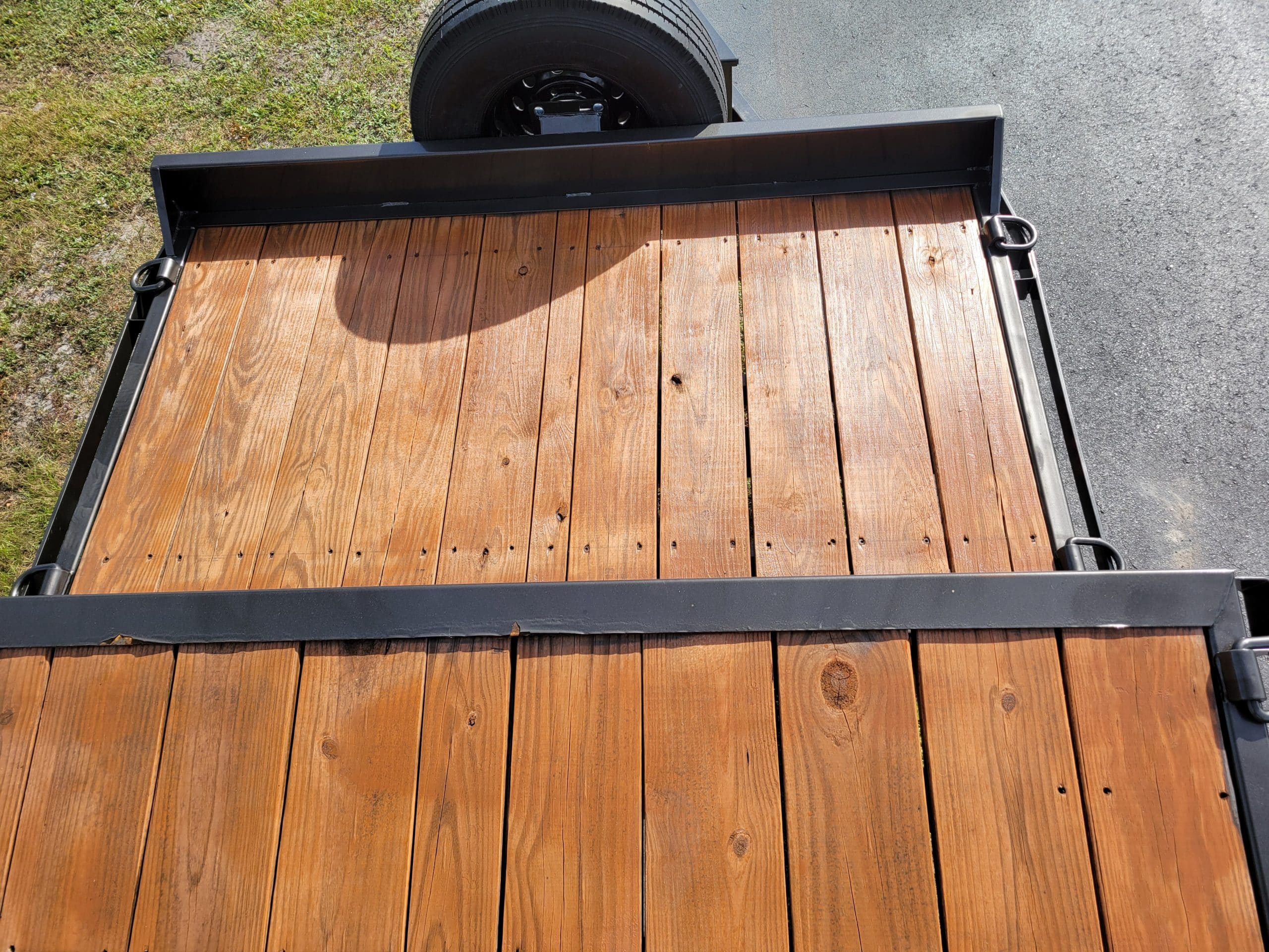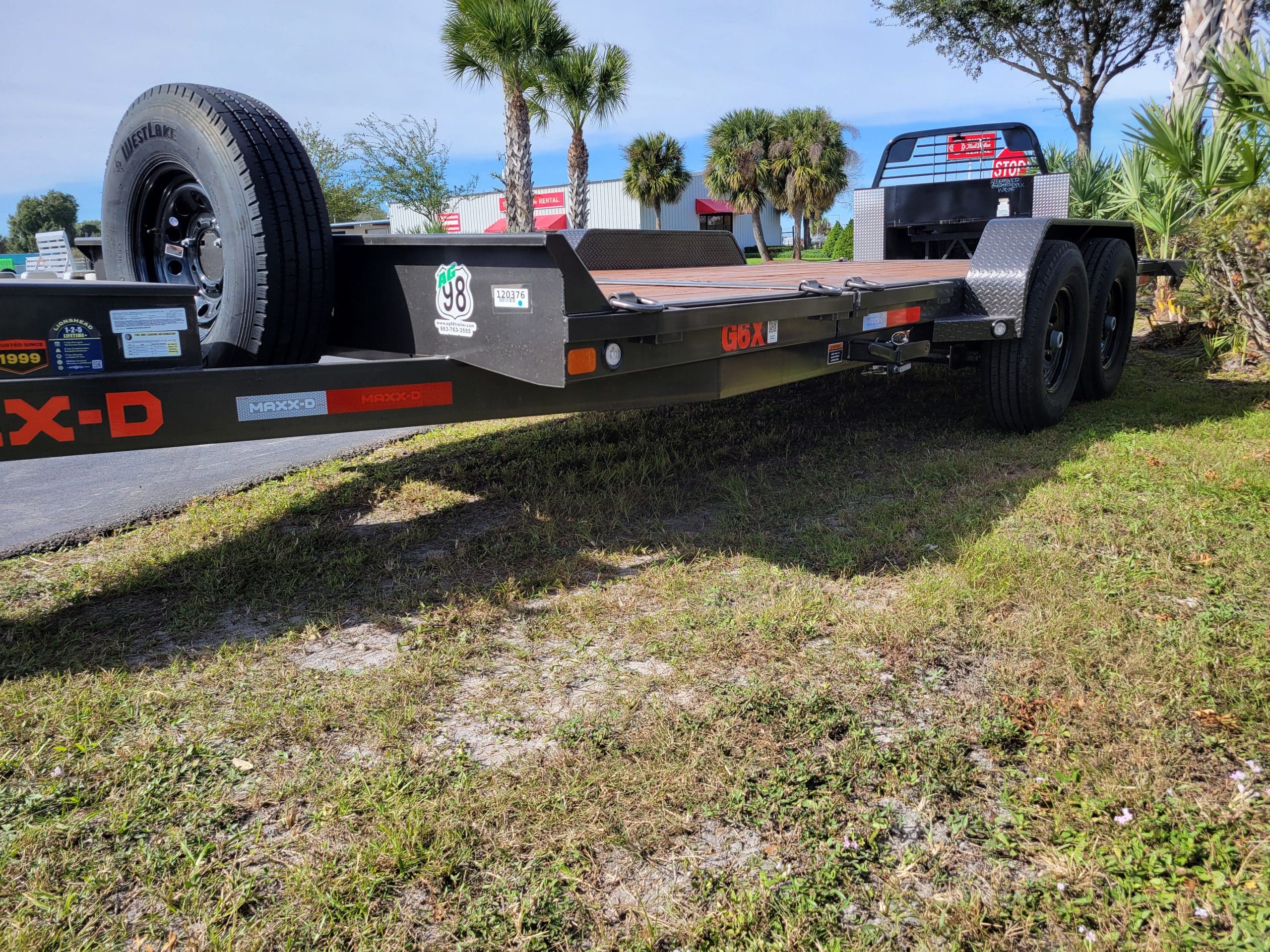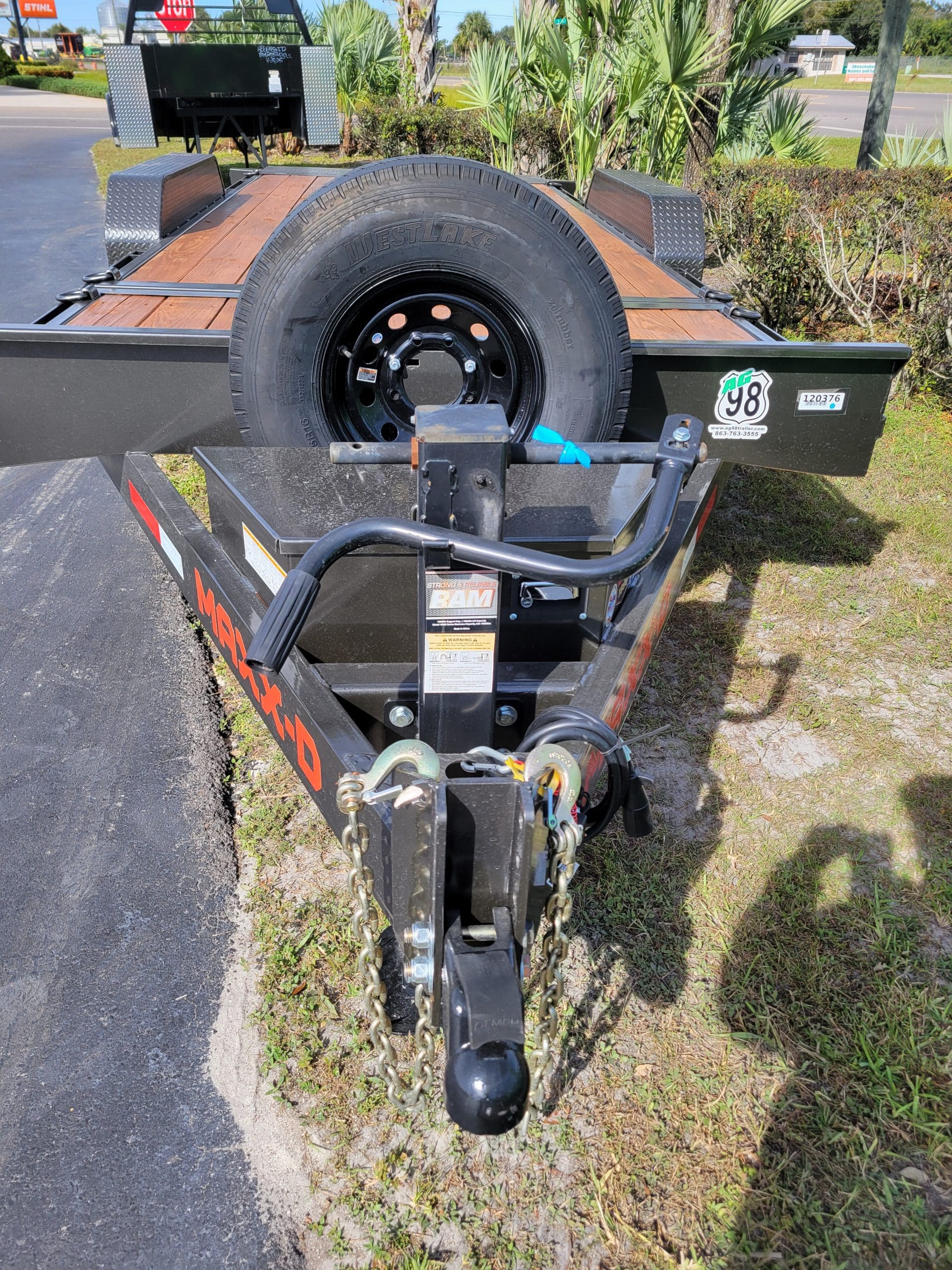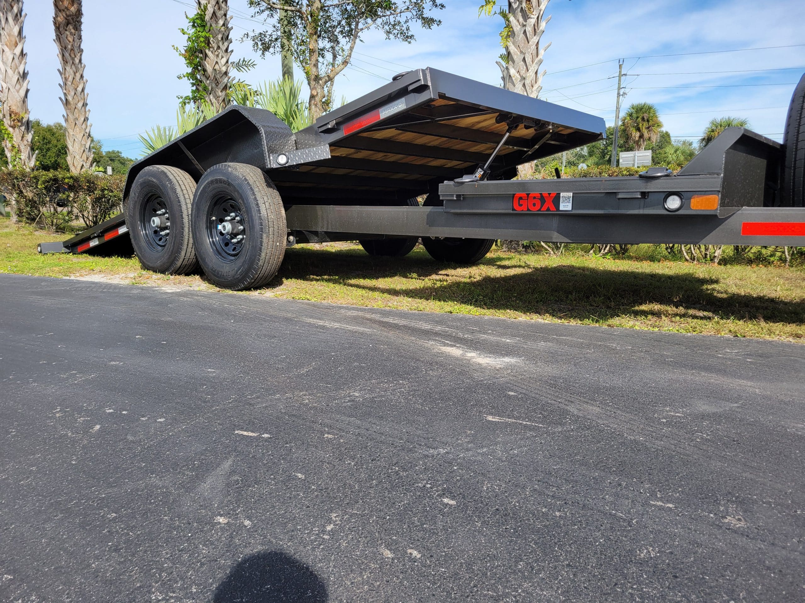 Maxx-D G6B8320 Gravity tilt 2025. 14,000lb GVWR 20’x83″ . 2-7k Torsion Electric brake axles, ST235/80R16 Tires on 16″ black steel wheels with spare and mount. 2 5/16 Adjustable ball coupler, 1-10k Drop leg jack, 6″ Channel warp tongue with toolbox. 6″x2″x3/16 Tube frame, 3″Channel on 16′ centers. 4′ Stationary deck with 16′ of tilt deck. 2″x8″ Treated pine wood floor. LED Lighting package, 7way RV plug with sealed Harness.