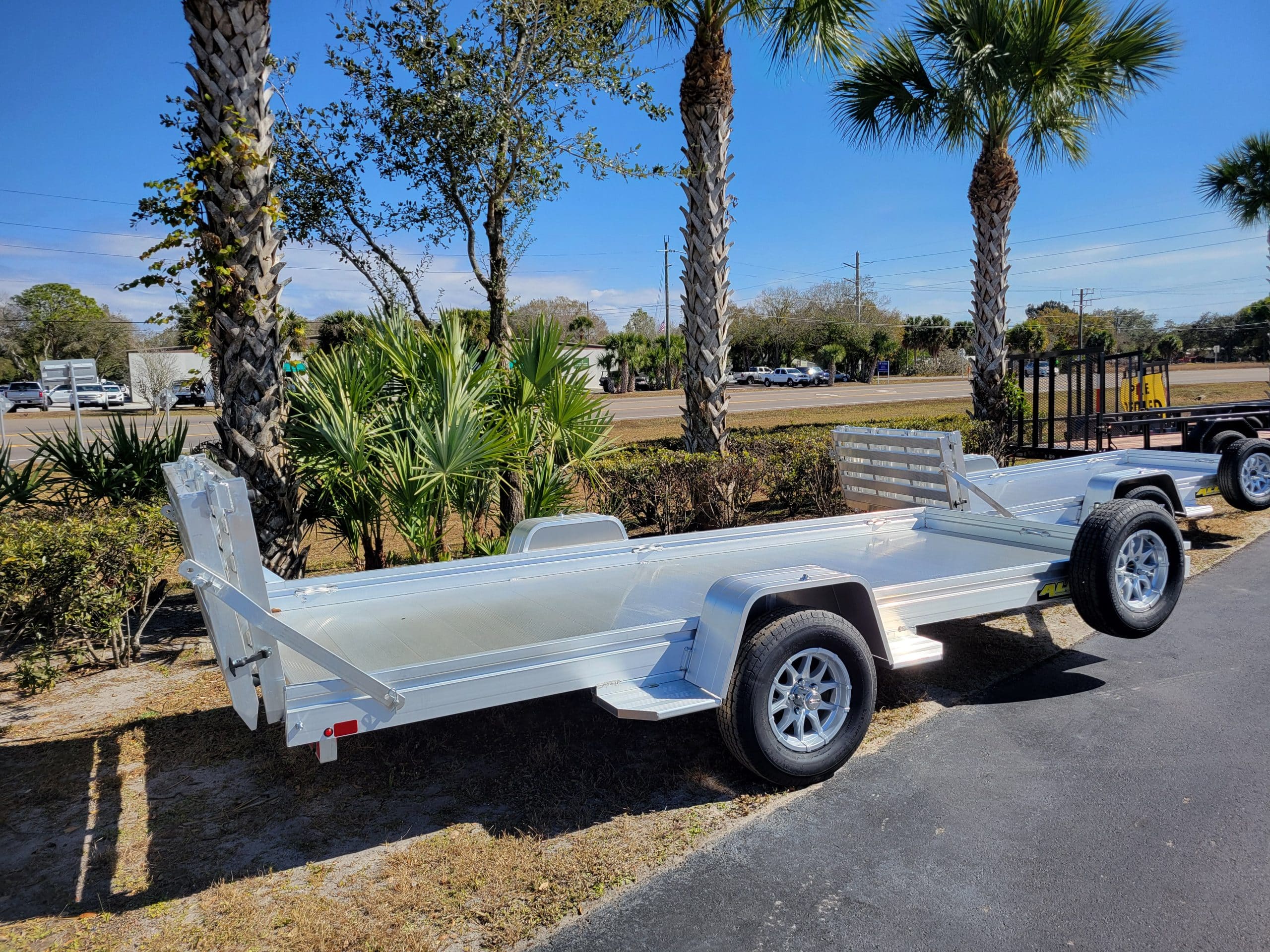 ALUMA 6814H UTILITY TRALER 2027. 1-3500lb Rubber torsion axle (rated at 2990lbs) NO BRAKES, ST205/75R14 Radial tires on 14″ Aluminum wheels w/Spare and Mount. Aluminum Fenders, Extruded aluminum floor, 7″ Heavy-duty frame rail. A-Framed aluminum tongue 48″ long with 2″ ball coupler. 7-Tie down loops (3 per side and 1 Front center). Tongue handle, Receptacle holder, Fender steps. Swivel tongue jack rated at 1200lbs, safety chains. LED Lighting package, 7-way RV plug, and Sealed Harness.