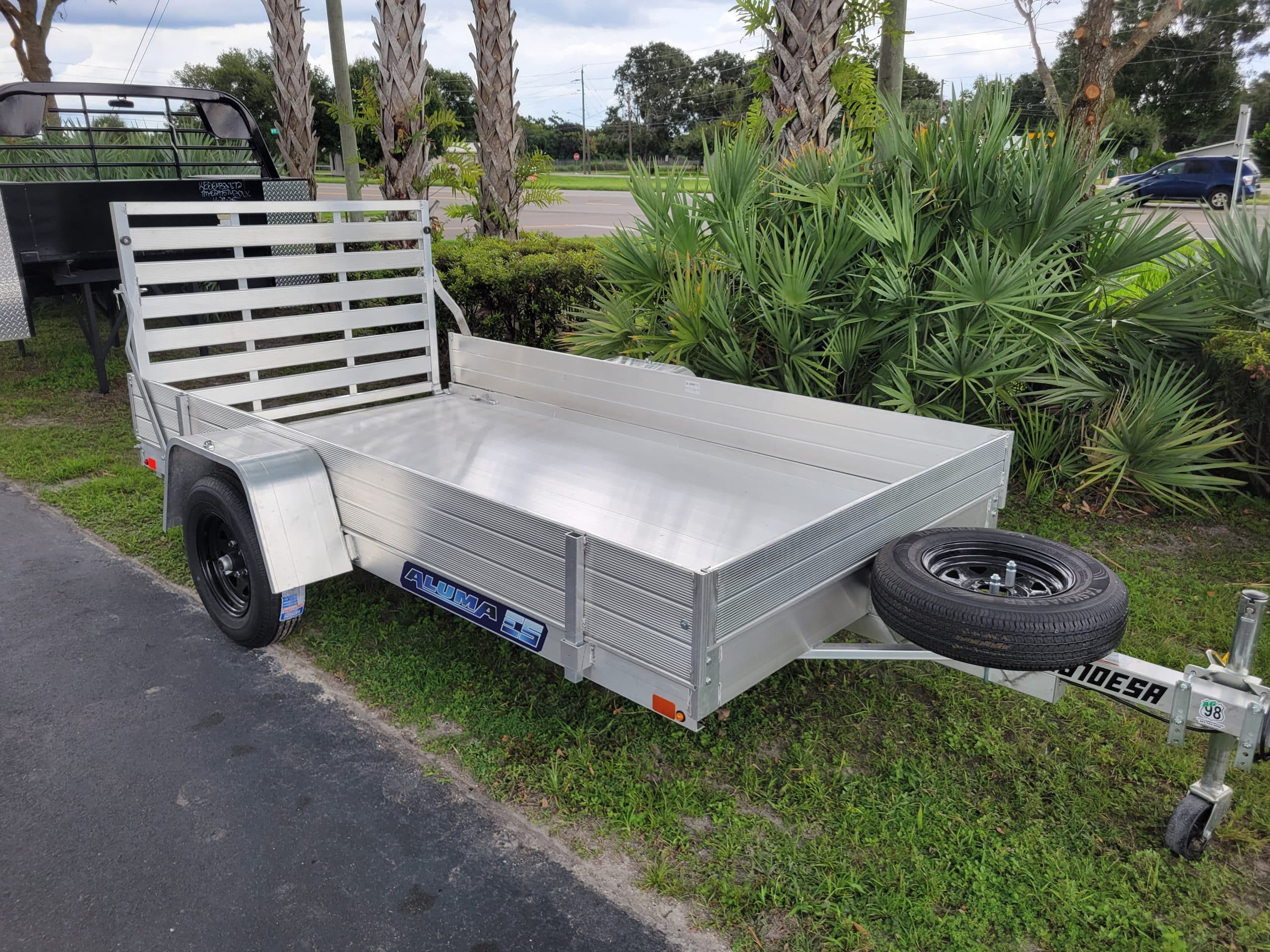 Aluma 6310ESA 5’3″x10′ 2026 (306688, 306689) 2000lbs Rubber Torsion Axle-NO BRAKES-Easy Lube Hubs ST175/80R13 Wheels & Tires 12″ Solid Side Kit Extruded Aluminum Floor 6″ Front Retaining Bumper A-Framed Aluminum Tongue, 48″ long with 2″ Ball Coupler 4- Stake Pockets (2 per side) 4-Tie Down Loops (2 per side) Swivel Tongue Jack, 1200lbs Capacity LED lighting Package Safety Chains